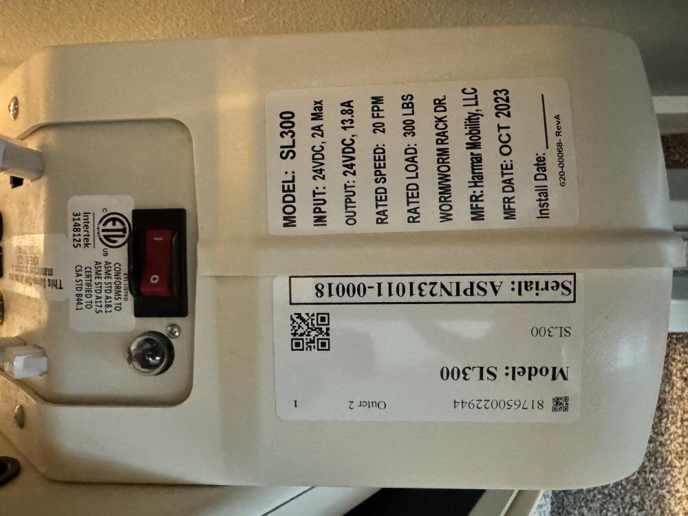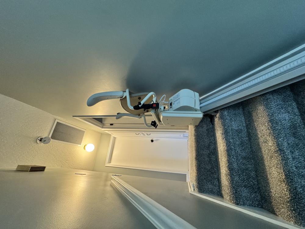 Like-new Harmar straight rail stair lift, barely used and in excellent working condition. 13.5 ft rail, 300 lb weight capacity. Comes with both the chair controls and remote. Battery-powered and runs smoothly and quietly.